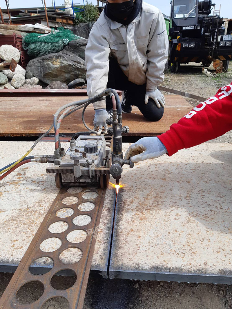 当社では、機械据付・プラント・鍛冶・鳶・溶接・鉄骨建方・解体・足場組など、多様な工種を一社で一貫対応できる体制を整えています。